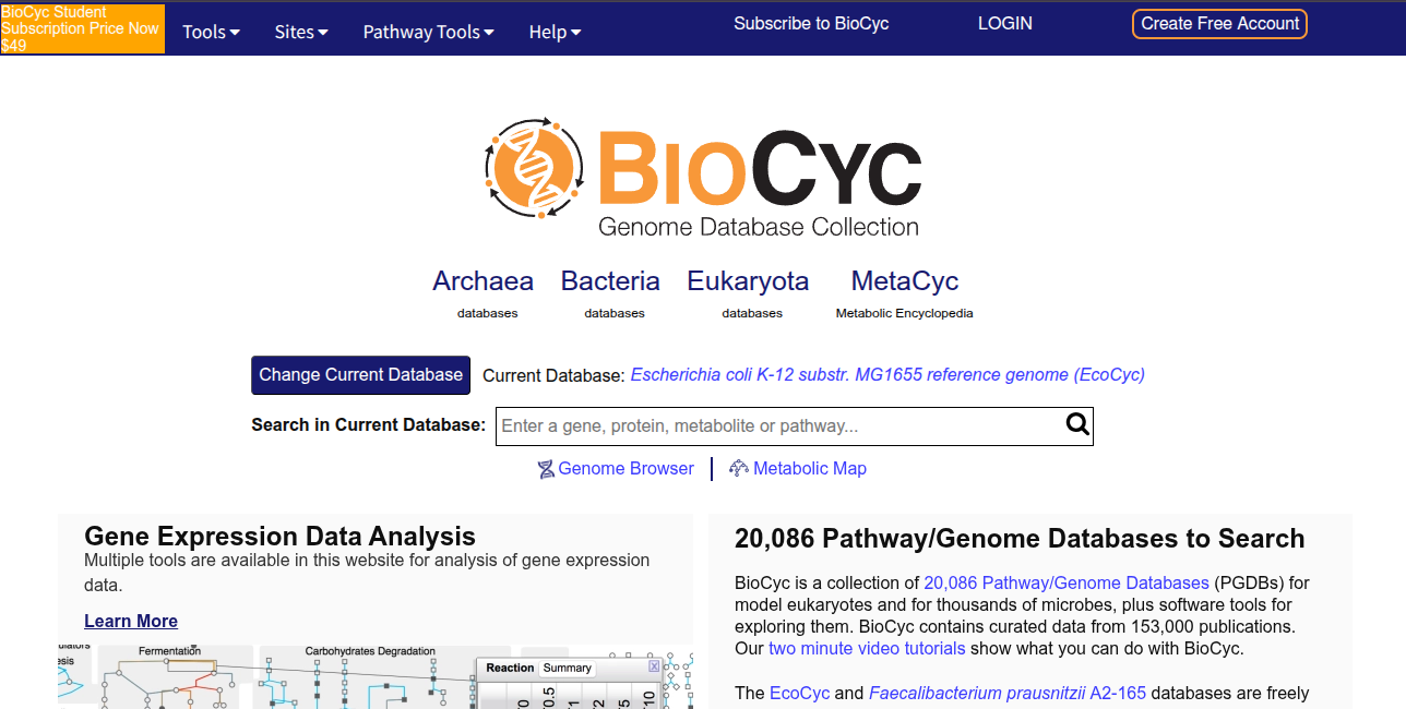 BioCYCは生物固有のPathway/Genome Databasesで、生物のゲノムと代謝パスウェイ情報を提供