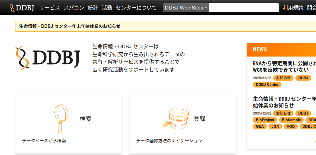 DRAはシーケンスの生データとアライメント情報のアーカイブサイト DDBJはアノテーションが付与されたゲノム、遺伝子、転写産物の塩基配列データベース