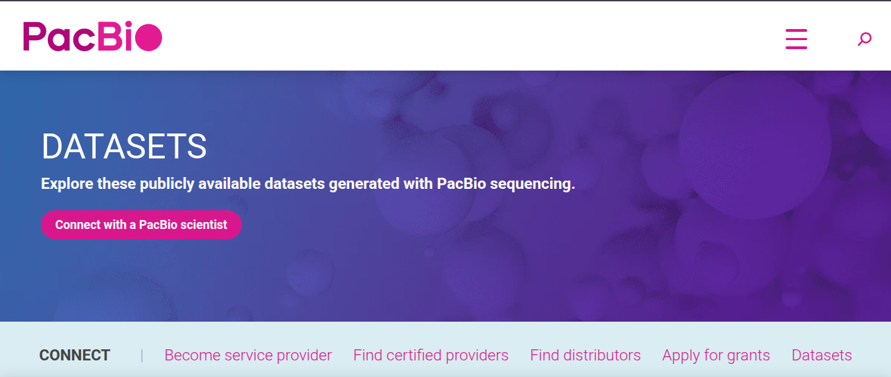 PacBioのシーケンサーを使って各分析メニューで生成されたデータをまとめたサイト LINK: https://www.pacb.com/connect/datasets/