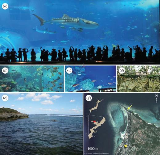 このプライマーは魚類の種組成が分かっている沖縄県美ら海水族館の4つの水槽(a-d)でを使い、採水、デュアルインデックスのライブラリー調整と次世代シークエンサー(Miseq)によるハイスループットなペアエンドシーケンスで複数サンプル中に含まれる魚類の環境DNA配列を解読して検証を行っています。自然生態系での検証は水族館付近の岩礁帯(e-f)でしています。