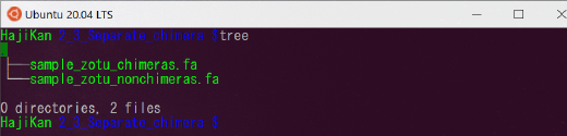 - (サンプル名)_zotu_chimeras.fa:キメラ配列が記載されたファイル