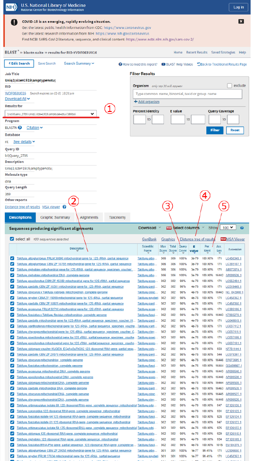 ~nonchimeras.faにある配列名- ここを変更すると各配列の BLAST 結果が表示されます