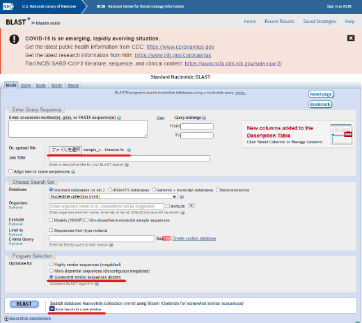 ~nonchimeras.faを選択 - 下段の「Somewhat similar sequences (blastn)」を選択