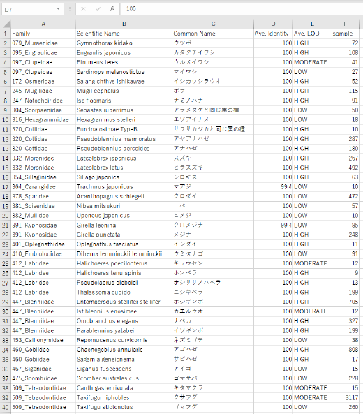 - MiFish メタバーコーディングでは、ここが 100% のものを優先して選ぶべきです