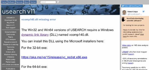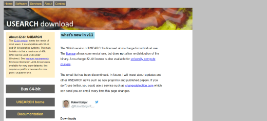 https://www.drive5.com/usearch/download.html にアクセスすると下記のような画面が表示されます。