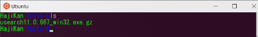確認すると .gz拡張子が外れたファイルがあるはずです。これでUsearch実行ファイルのダウンロードと解凍は完了です。