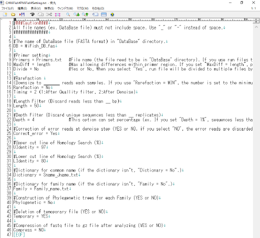 MiFishフォルダ内に作成されたPMiFishフォルダの manual(japanese).pdf が PMiFish 2.4.1 の日本語マニュアルになります。マニュアル記載の指示に従っても設定できると思います。