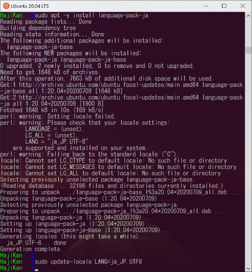 この場合、WSL の Ubuntu 環境を日本語化しておくと改善することがあります(私も同様のエラーに遭遇しました)。参考 URL の内容に従って、日本語化していきます。