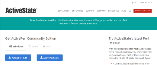 https://www.activestate.com/products/perl/ にアクセスすると下記画面が表示されます。